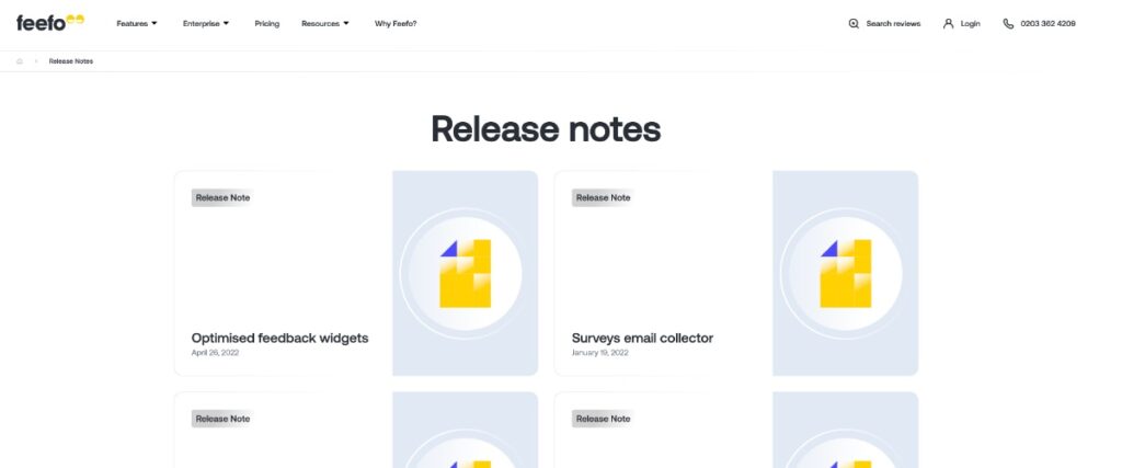 Feefo offers a well-curated release note that allows businesses or teams to classify upgrades and changes that come with software releases, making it easier for customers to access relevant information about product updates in chronological order quickly.